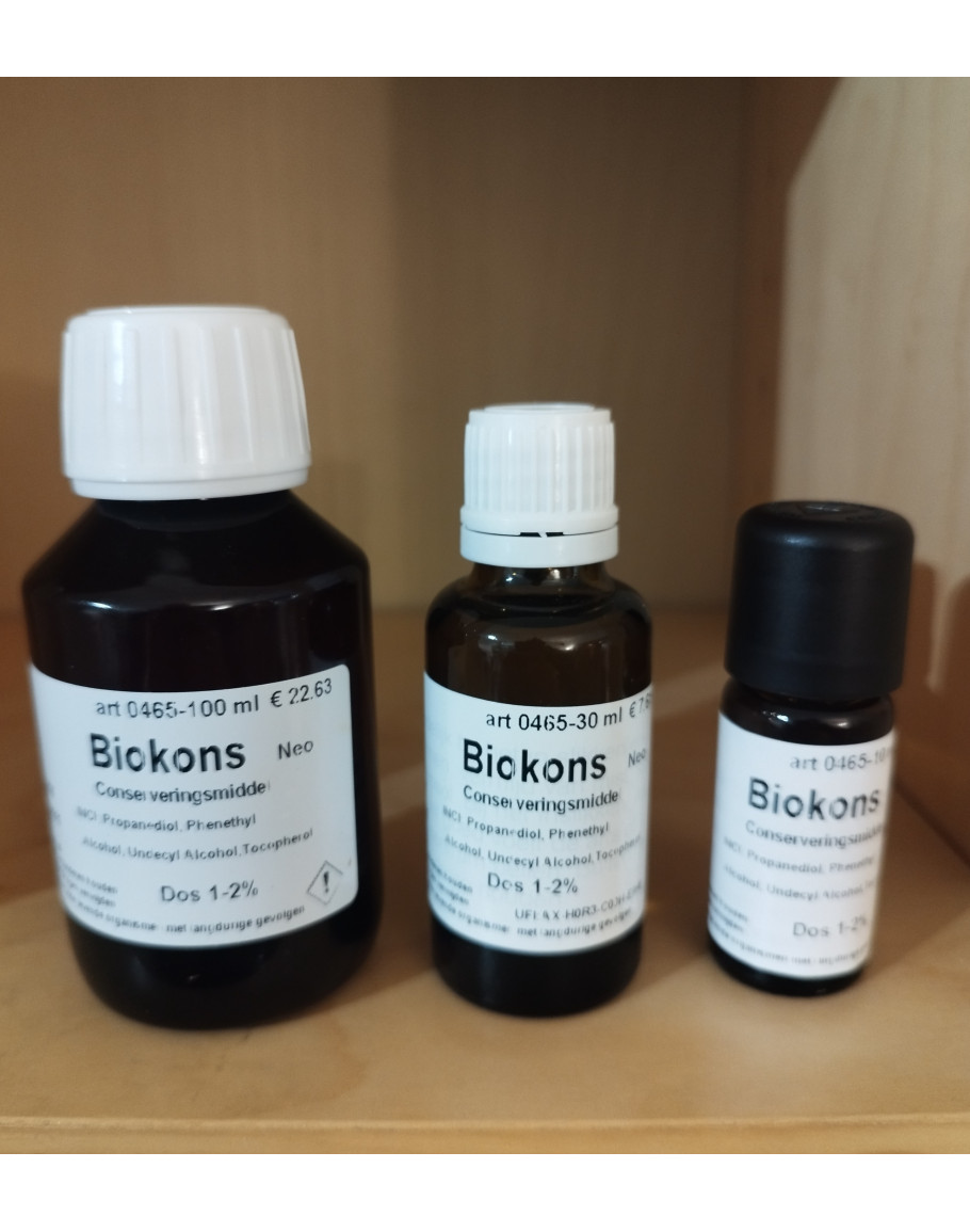 Biokons Neo conserveringsmiddel-Herbacos 10 ml - 42-0465-10 (Herbacos). Mild conserveringsmiddel voor cosmetica. Biokons is een combinatie van diverse antibacterieel werkende natuurlijke geurstoffen. Dit conserveringsmiddel is biologisch afbreekbaar.