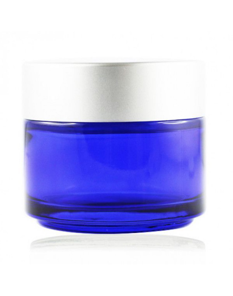 Crèmepot blauwglas met matte zilveren deksel 100 ml - 1002-A02942-100 (Herbacos).