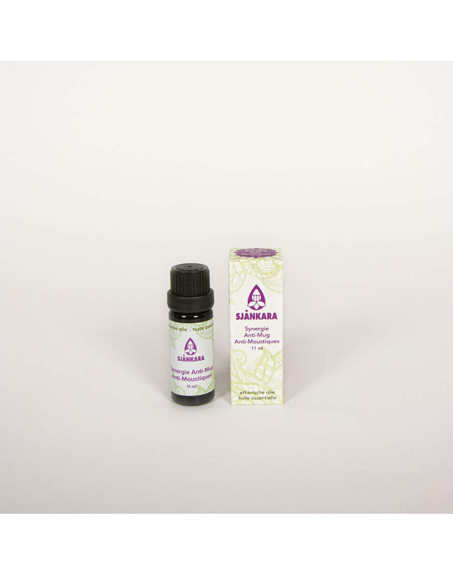 Synergie Anti-Mug Sjankara 11 ml - 12-2217 (Sjankara). Specificatie : Citronella (Cymbopogon winterianus), atlasceder (Cedrus atlantica), davana (Artemisia pallens), geranium “African” (Pelargonium x asperum), kruidnagelknop (Caryophyllus aromaticus), lav